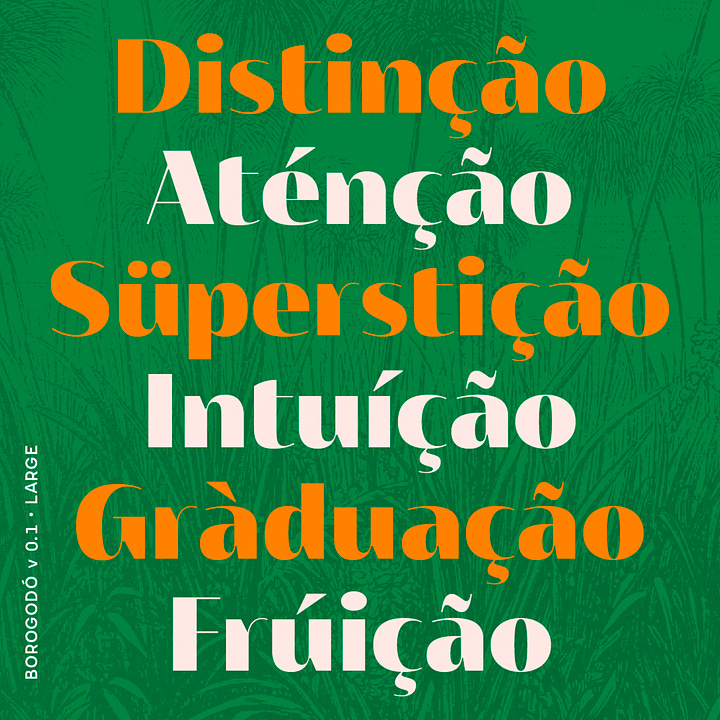 A Naipe Foundry lançou pela FutureFonts o projeto da Borogodó. Além do nome, que é dos mais legais, o tipo tem bastante personalidade e muito contraste, dois elementos em falta nas sem-serifas por aí. Também ficamos sabendo que o a família contará com 42 estilos e, na nossa opinião, está barato.